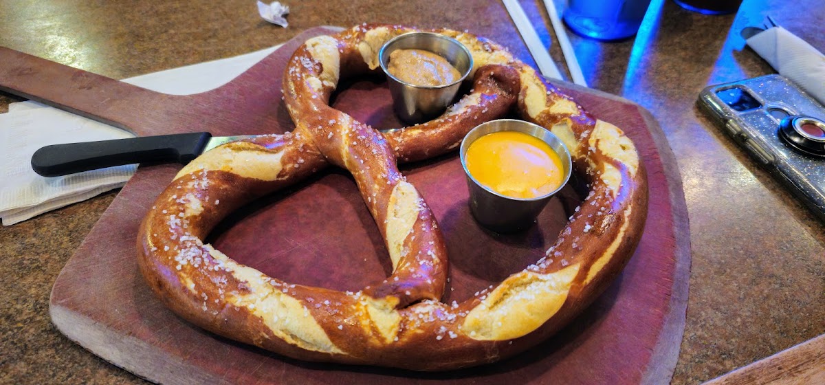 The menu showcases classic American fare with some thoughtful twists, catering to a range of tastes. The signature Prime Rib served with vegetables and a choice of sides stands out as a hearty, carefully prepared plate that resonates with customers looking for comfort food with generous portions. Other highlights include the Bavarian Pretzel paired with beer cheese, crisp and soft-fried wings like the mango habanero variety that balances sweetness and spice, and burgers with creative toppings that reflect local flavor preferences.